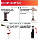 Kita: Oro pompos kamščio šalinimas, folijos pjoviklis, aeratoriaus pyliklis, vakuuminis kamščio uždarytuvas