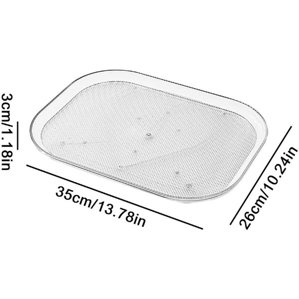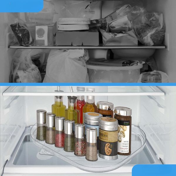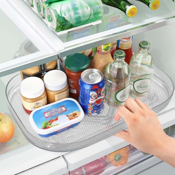 Turėkite tvarkingą ir švarų šaldytuvą, naudodami mūsų skaidrų stačiakampį šaldytuvo padėklą. Šis 360° kampu besisukantis šaldytuvo organizatorius puikiai tinka norint lengvai pasiekti produktus ir maksimaliai išnaudoti erdvę. Jį paprasta valyti, jis turi neslystančius siurbtukus ir jo nereikia montuoti.