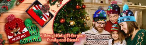 XBEANIE su kalėdinio elniuko ir sniego senio motyvų raštu ir su LED lemputėmis, kurios atitinka šventinius poreikius ir gražią madą