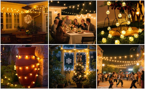 Švęskite savo ypatingus renginius – vestuves, iškylas ar Kalėdų šventes su išliekančia elegancija. SOLSTICE lempučių girlianda ir saulės kolektoriai yra atsparūs vandeniui pagal IP44 standartą, todėl juos galima naudoti patalpose ir lauke nesibaiminant, kad oro sąlygos gali pakenkti.