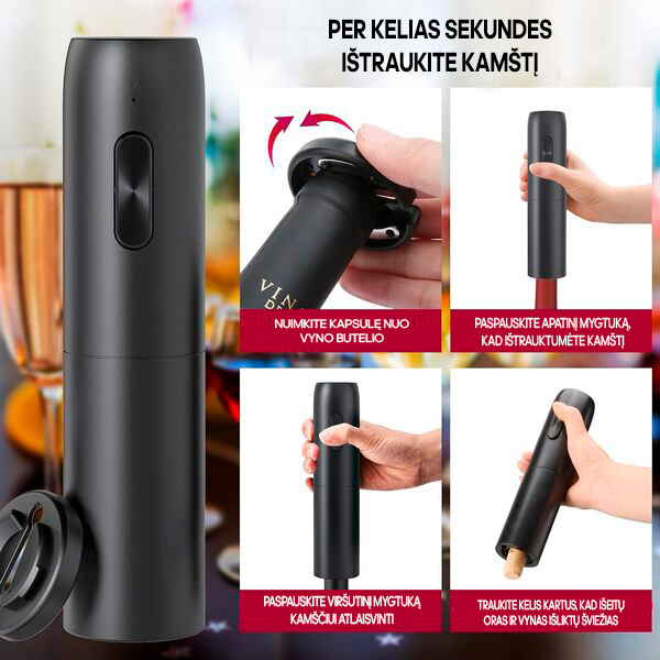 🍷 Atidaro bet kokį butelį su kamščiu per 7 sekundes – vieno mygtuko paspaudimu