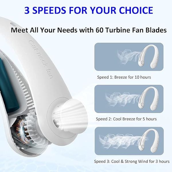 Šis kaklo ventiliatorius pagamintas iš ABS medžiagos ir minkšto silikono, pasižymi lanksčia 360° pasukimo konstrukcija,