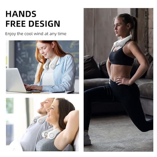 Ventiliatorius patogiai kabinamas ant kaklo ir leidžia laisvai naudoti nelaikant jo rankose. Šis praktiškas prietaisas karštomis dienomis ir vakarais užtikrins vėsą ir gaivą.