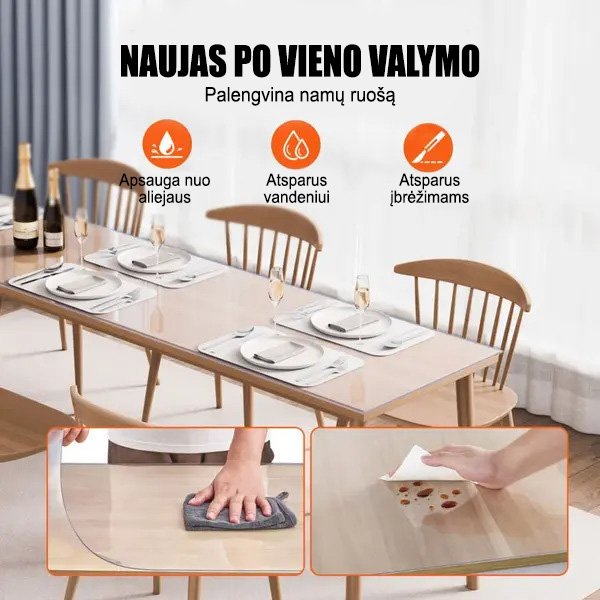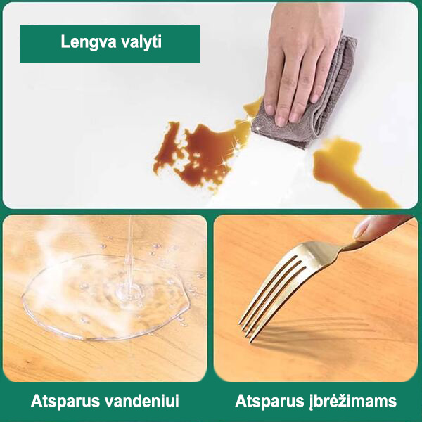 🛡️ Apsaugo jūsų stalą nuo išsiliejimų, įbrėžimų ir karščio.