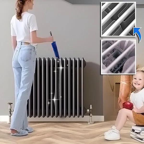 Nereikia nuimti radiatoriaus grotelių. DUSTOFF yra pritaikytas radiatoriams valyti. Jo elektrostatinis krūvis pritraukia dulkes ir nešvarumus, todėl jis idealiai tinka skydiniams, koloniniams, lėkštiniams, kopėčių tipo radiatoriams ir rankšluosčių džiovintuvams.