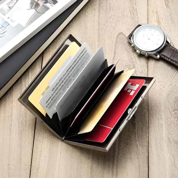Pagaminta iš aukštos kokybės nerūdijančio plieno, ši piniginė yra patvaresnė ir ilgaamžiškesnė nei plastikiniai ar aliumininiai variantai, todėl užtikrina puikią jūsų kortelių apsaugą.