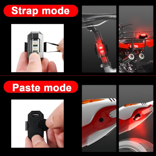 Šie žibintai yra neįtikėtinai universalūs ir sukurti taip, kad tiktų automobiliams, motociklams, dviračiams ir dronams. Pasirinkite vieną iš „Velcro“ ir guminių žiedų montavimo būdų, kad galėtumėte saugiai ir paprastai įrengti. Nereikia sudėtingų įrankių ar profesionalios pagalbos.